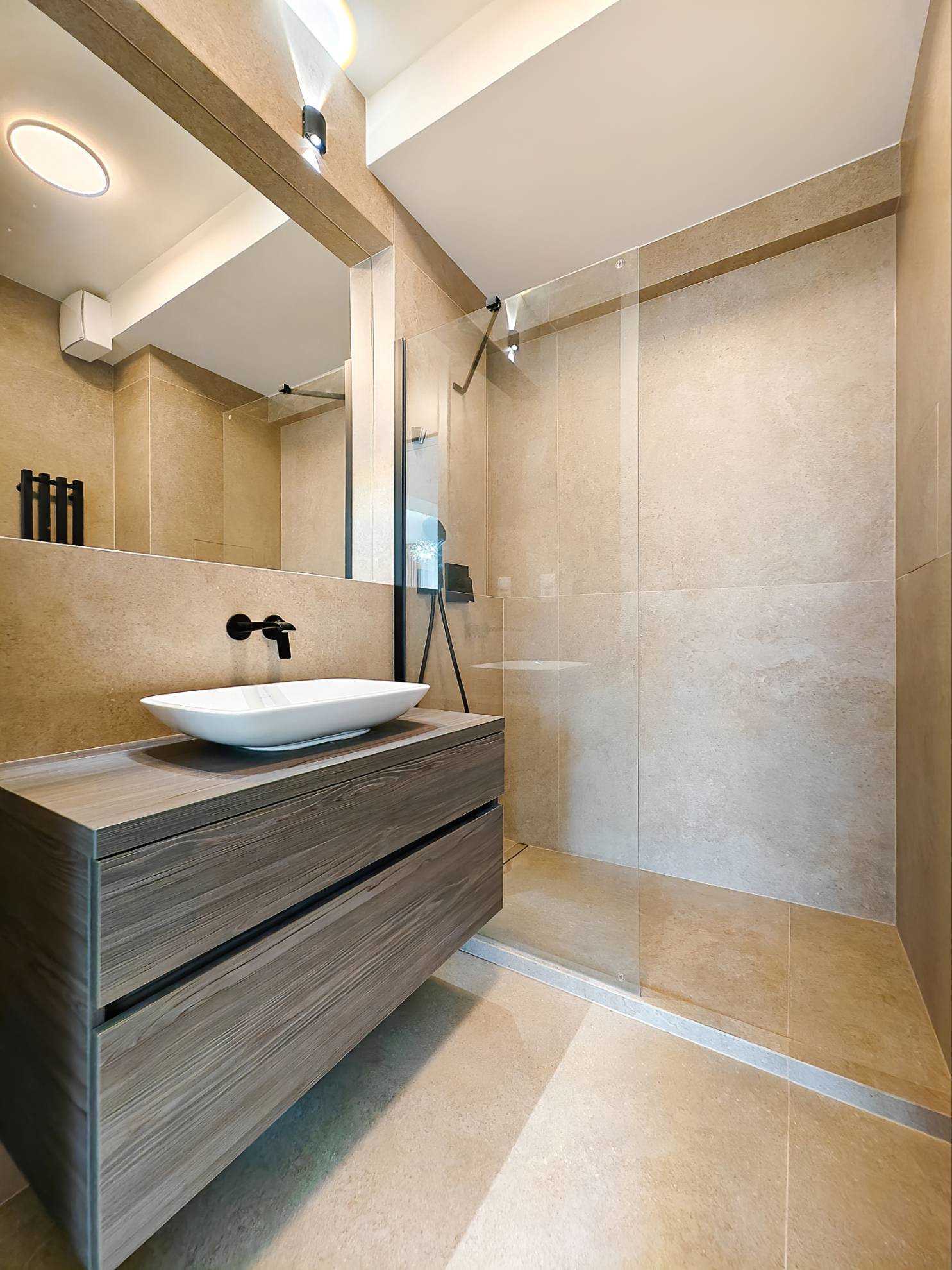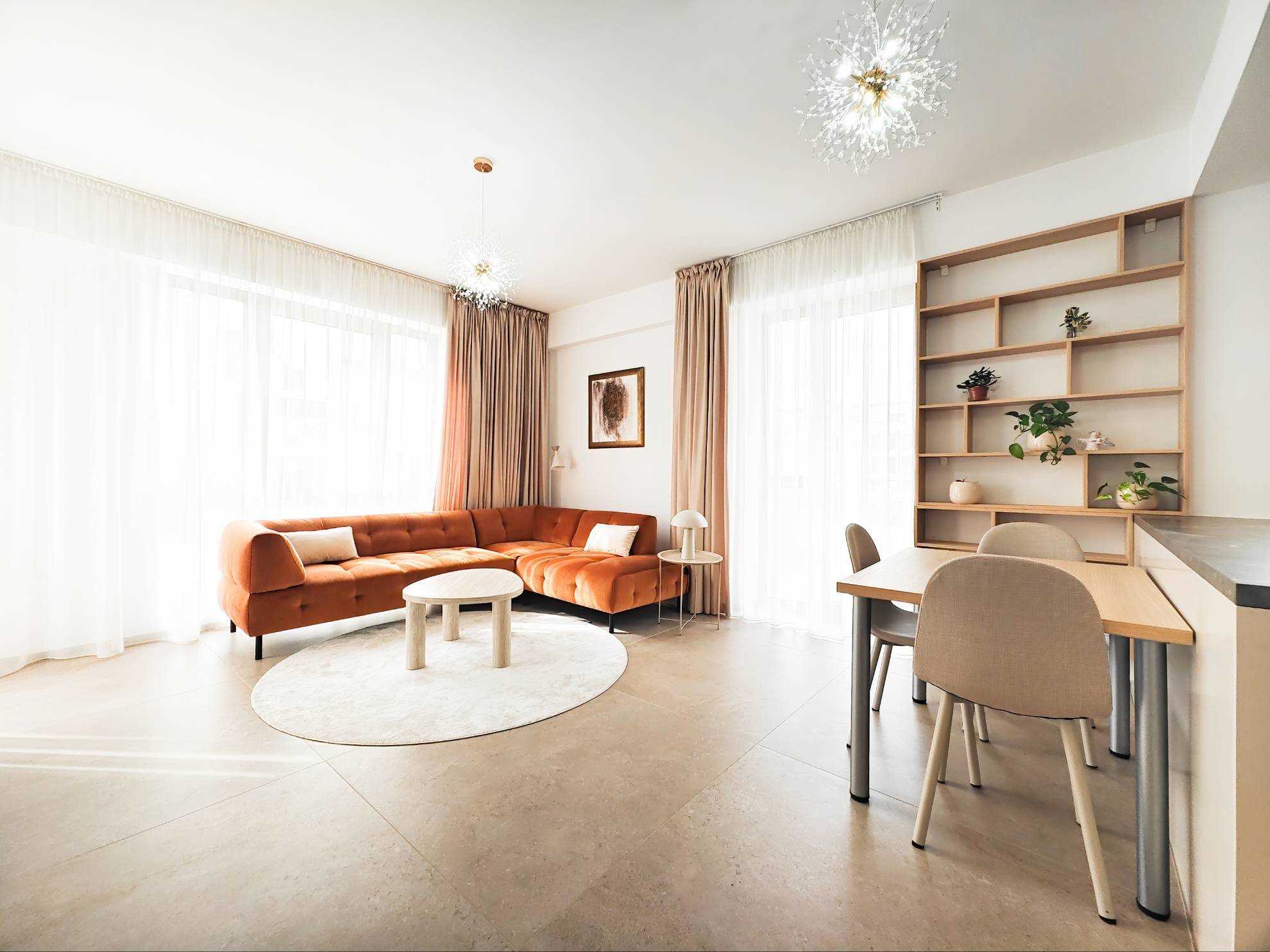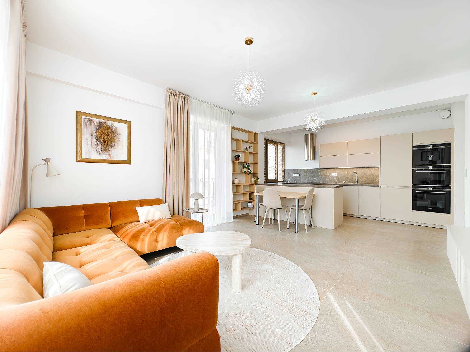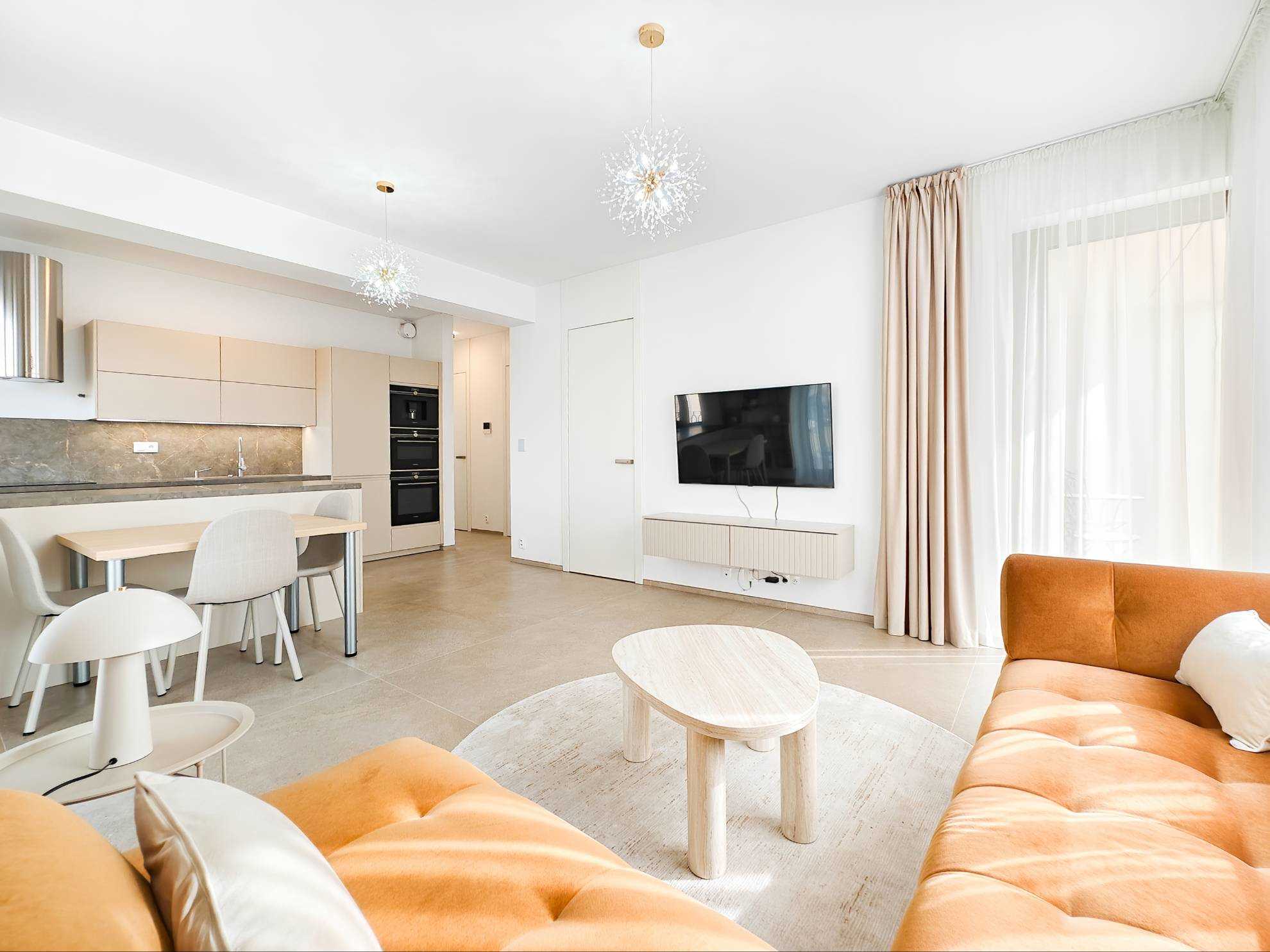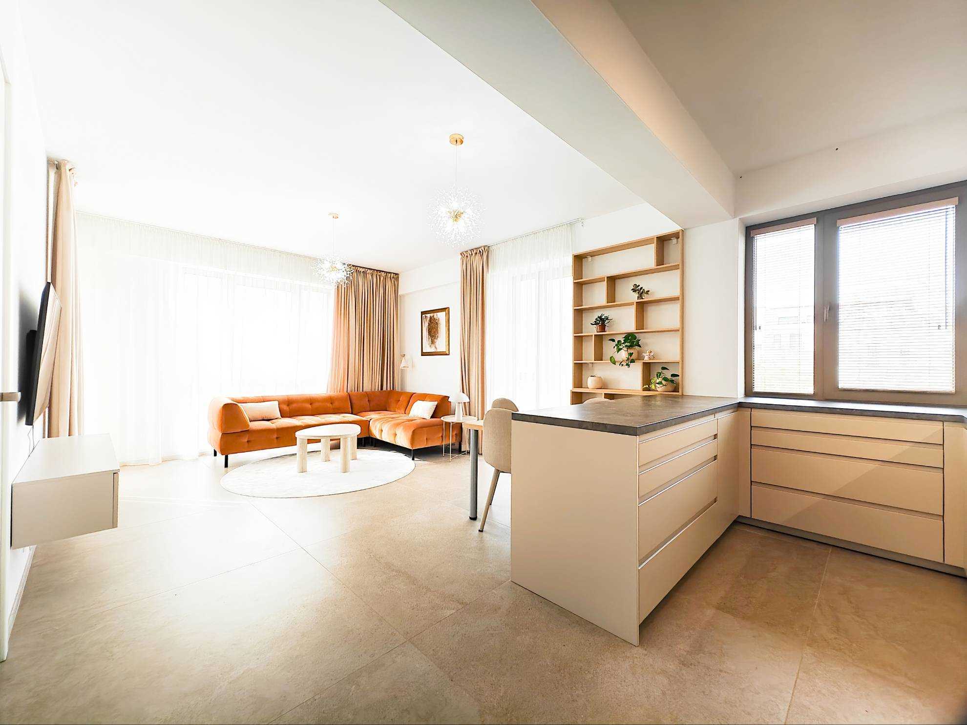 Byt o výmere 80 m² sa nachádza na 2. nadzemnom podlaží a predstavuje ideálne spojenie moderného dizajnu, funkčnosti a nadštandardného komfortu. Interiér bol navrhnutý dizajnérom s dôrazom na detail, čisté línie a kvalitné materiály, čím vytvára harmonický a reprezentatívny priestor na bývanie.
